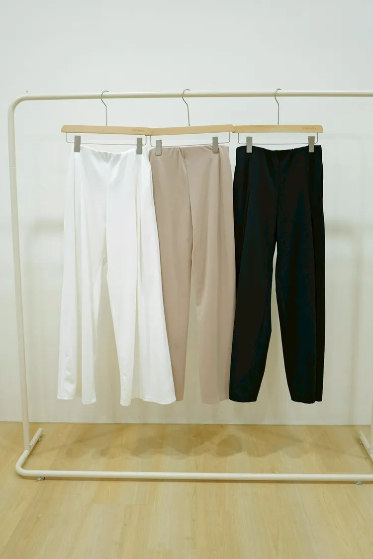 圓領休閒針織長褲(白,杏,黑)
