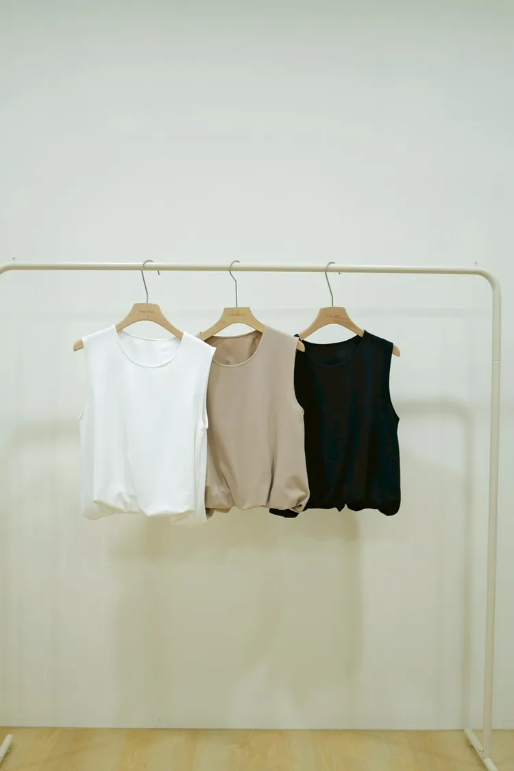 圓領休閒寬肩背心(白,杏,黑)