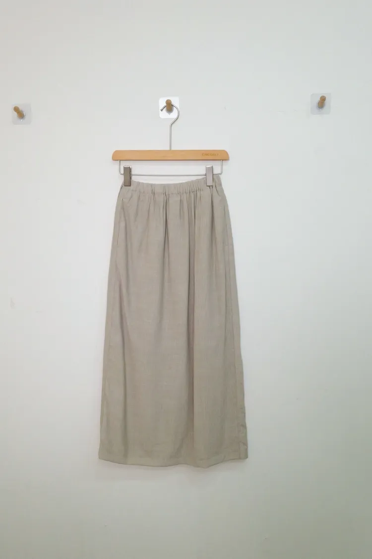 亞麻82%鬆緊灰色長裙