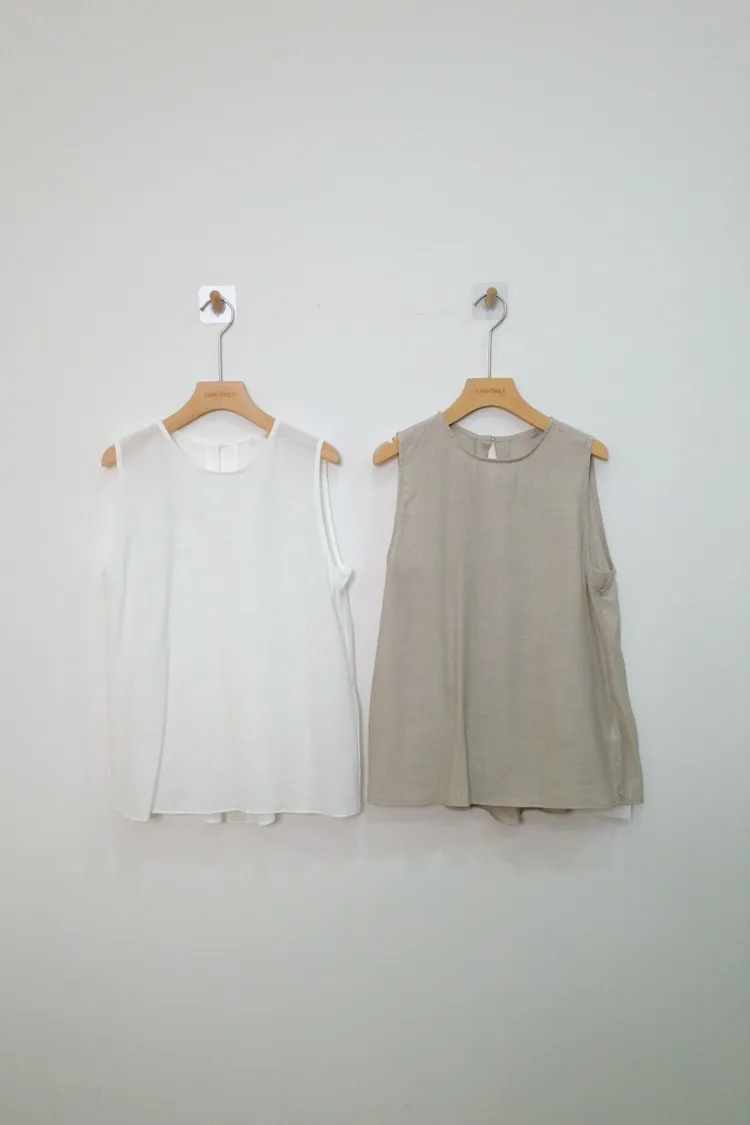 亞麻82%後縷空寬肩背心(白,灰,黑)