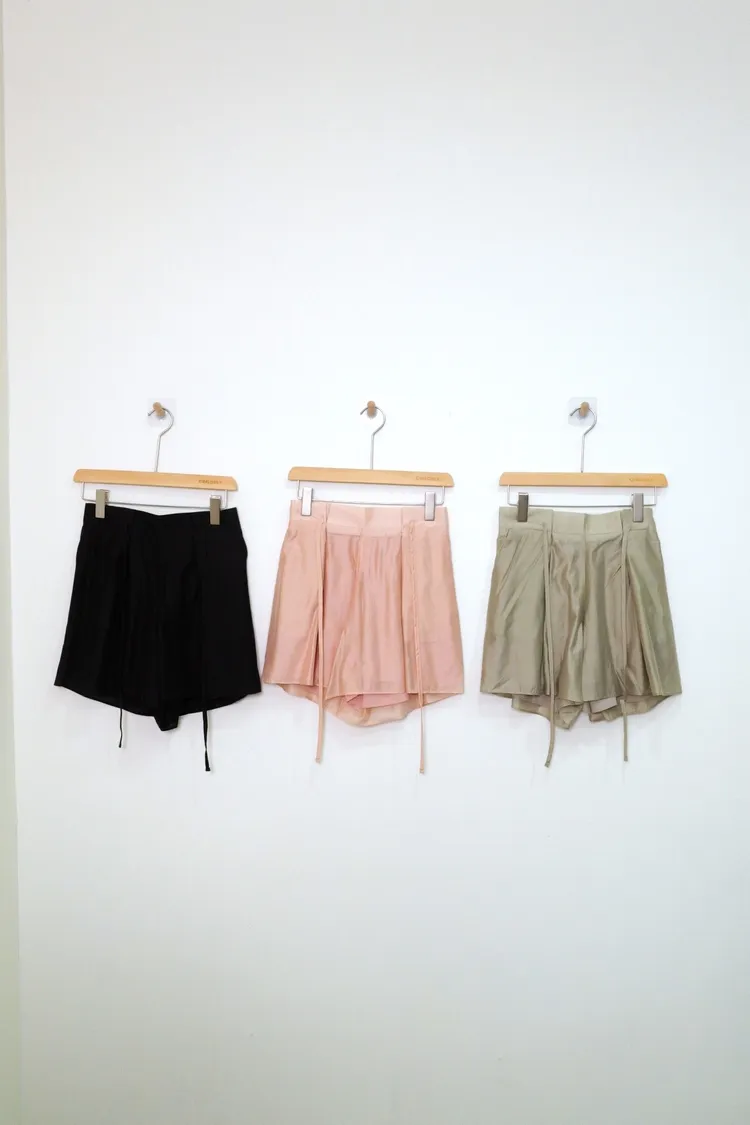 光澤綁帶短褲(綠,粉,黑)