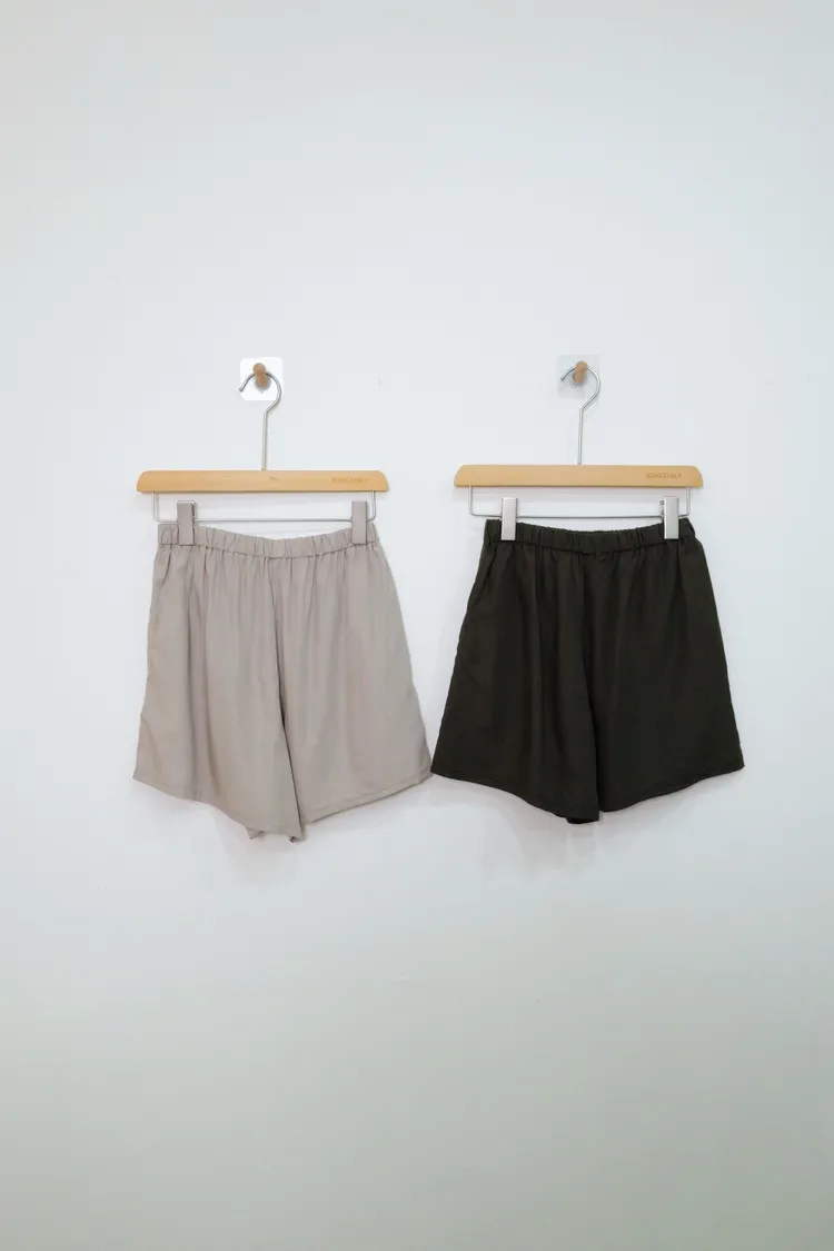 亞麻50%天絲50%舒服鬆緊短褲(淺,深)