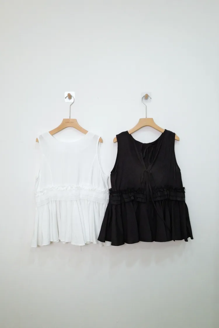 氣質木耳邊寬肩背心(白,黑,綠)