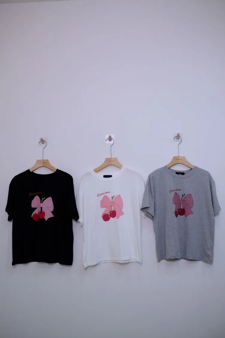 蝴蝶結櫻桃T(白,灰,黑)