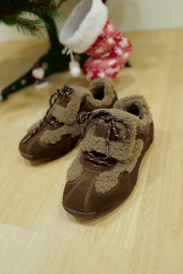 牛皮毛毛軟Q運動鞋(杏,咖)(23,23.5,24,24.5,25)