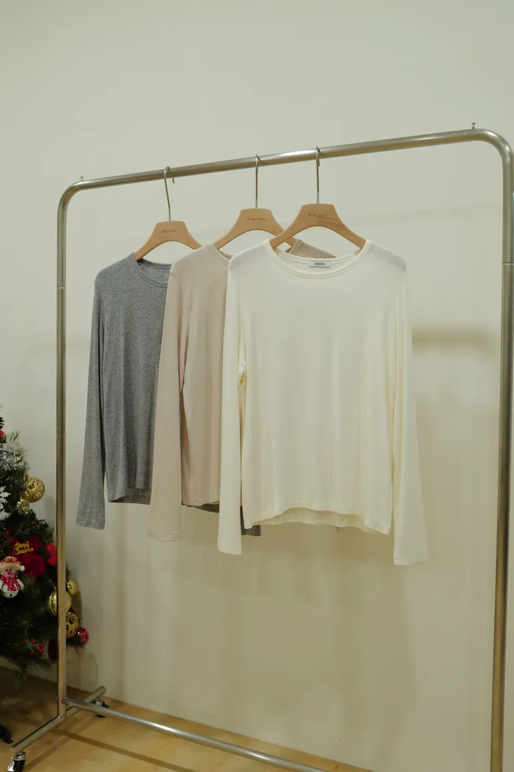 羊毛15%舒服圓領上衣(杏,灰,白)