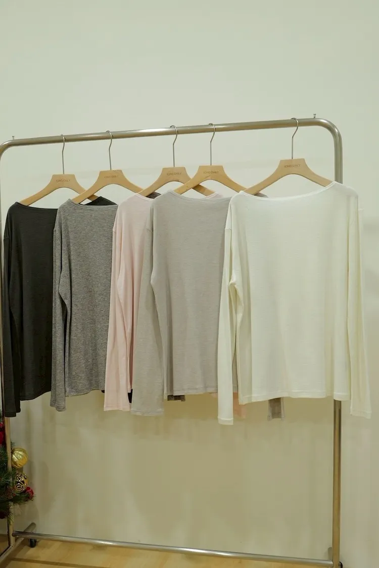 天絲45%羊毛20%舒服百搭船領上衣(白,杏,灰,黑,粉)
