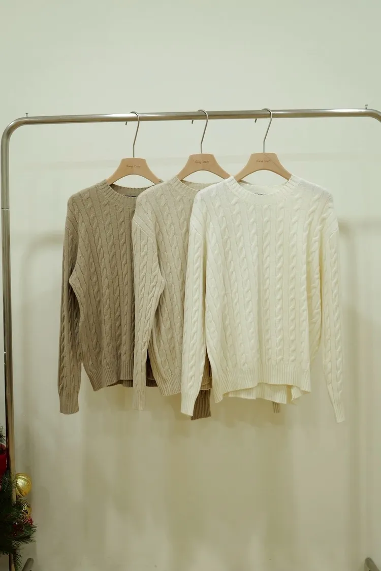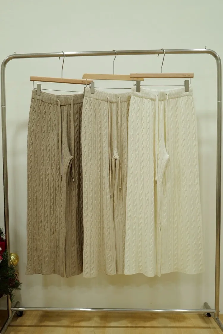 美麗諾羊毛30%羊絨20%麻花紋路上衣裙SET(白,杏,咖)