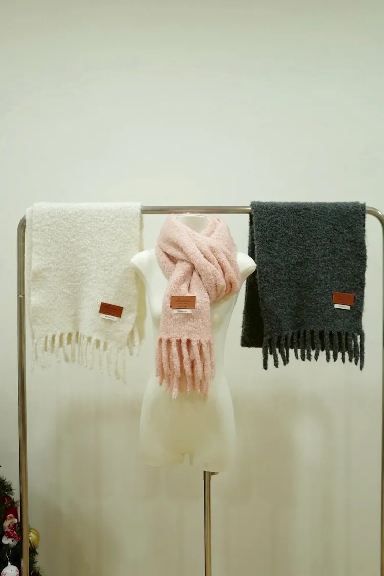 羊毛80%減齡鬚鬚圍巾(粉,白,灰)