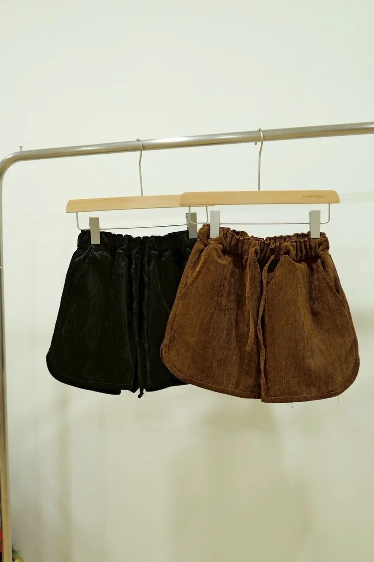 口袋抓皺短褲(咖,黑)