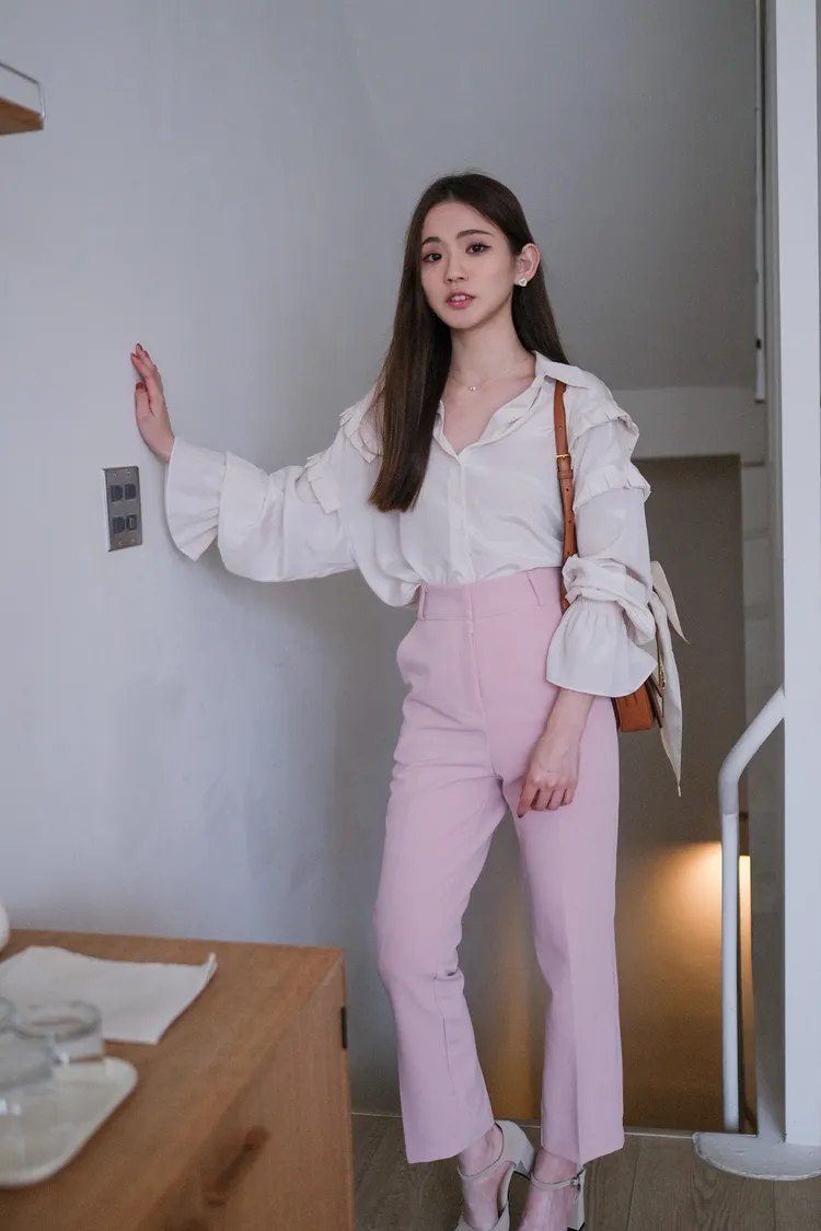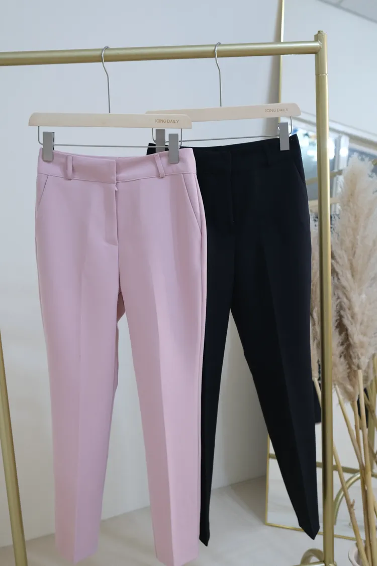 直筒挺版西裝褲(黑/粉)(S/M)