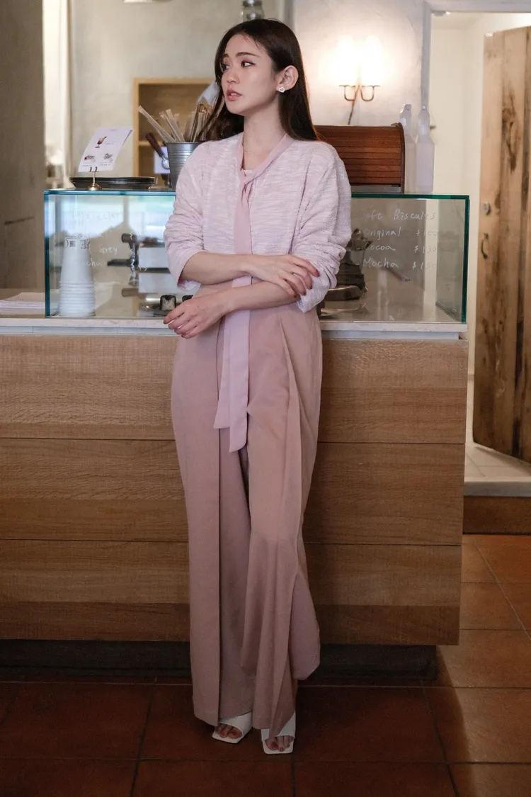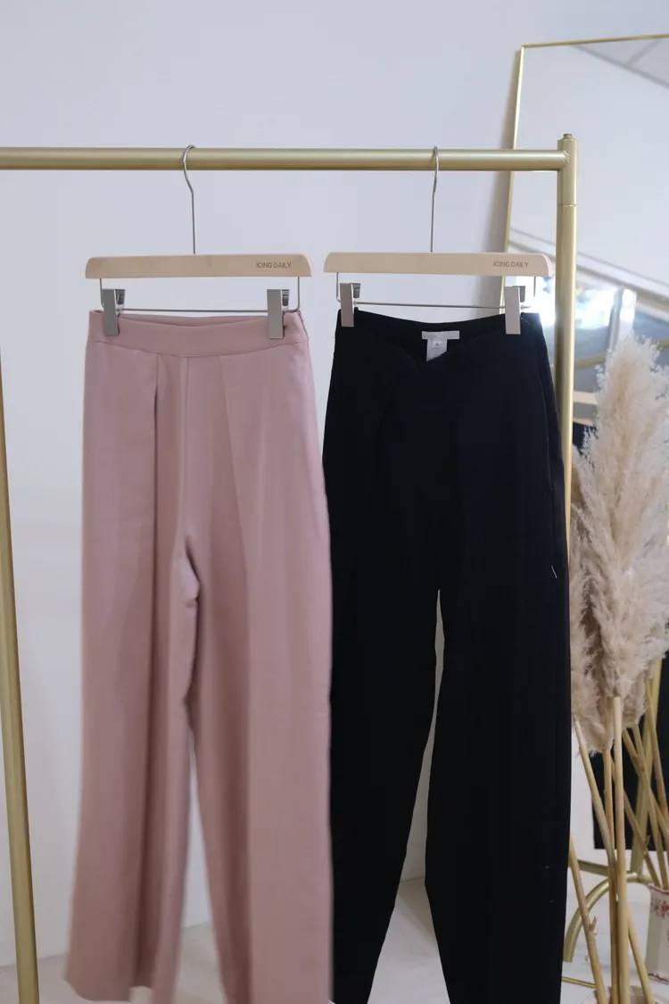 寬版打摺雪紡褲(粉/黑)(S/M)
