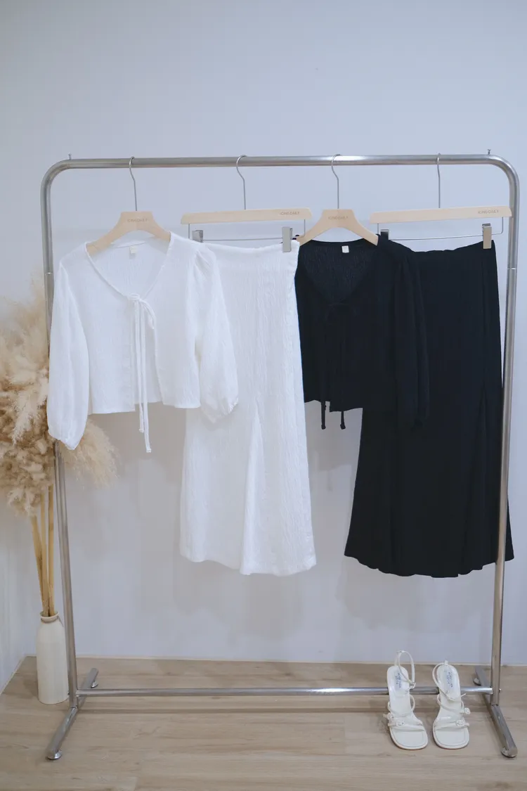 上衣尺寸:肩34.5CM,胸43.5CM,全長42.5CM 裙子尺寸:腰28.5~37.5cm,臀43.5cm,全長85cm