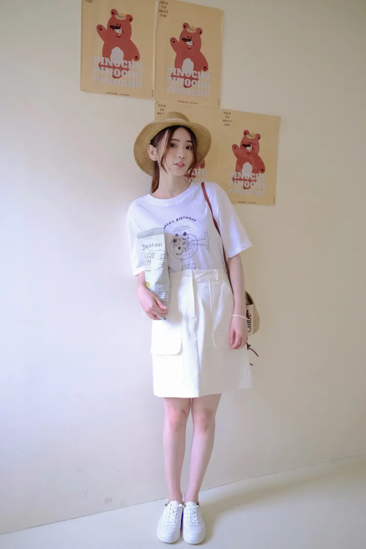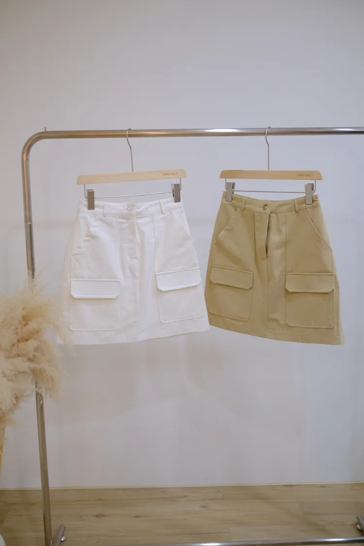 挺版剪裁口袋短裙(白/卡其)(S/M)