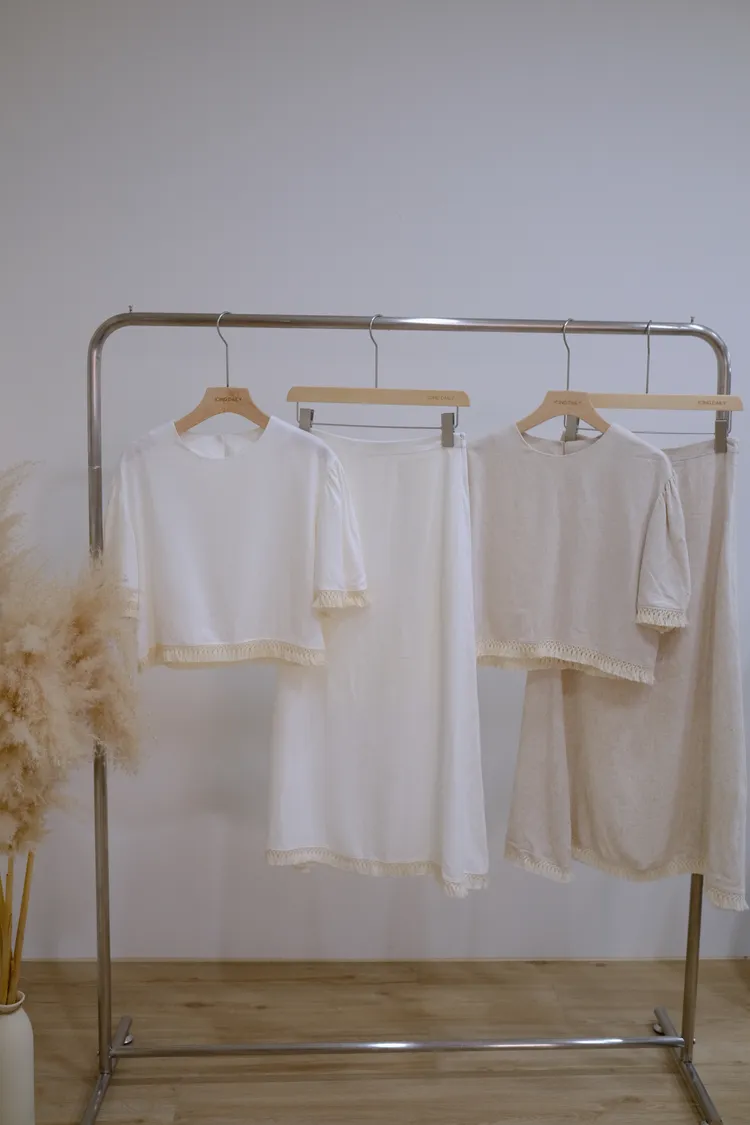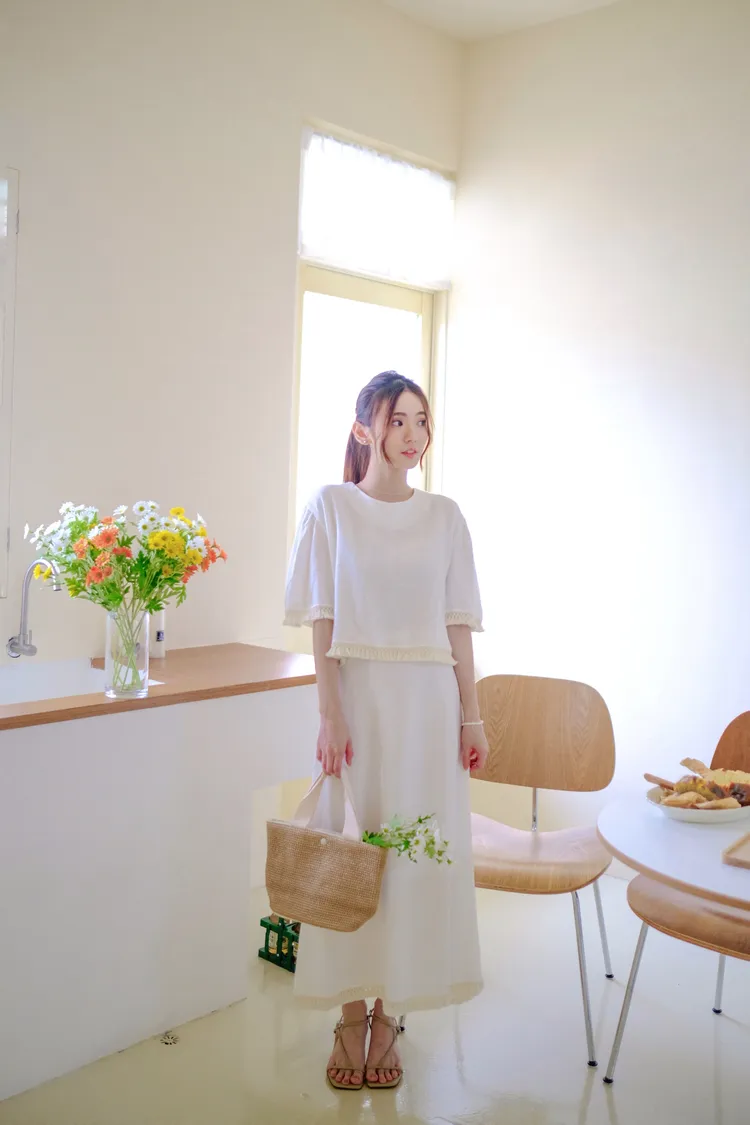 波西米亞流蘇棉麻裙(白/杏)(S/M)可拆買