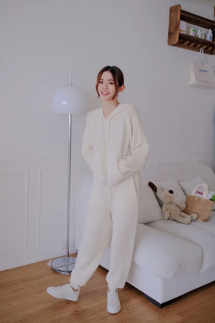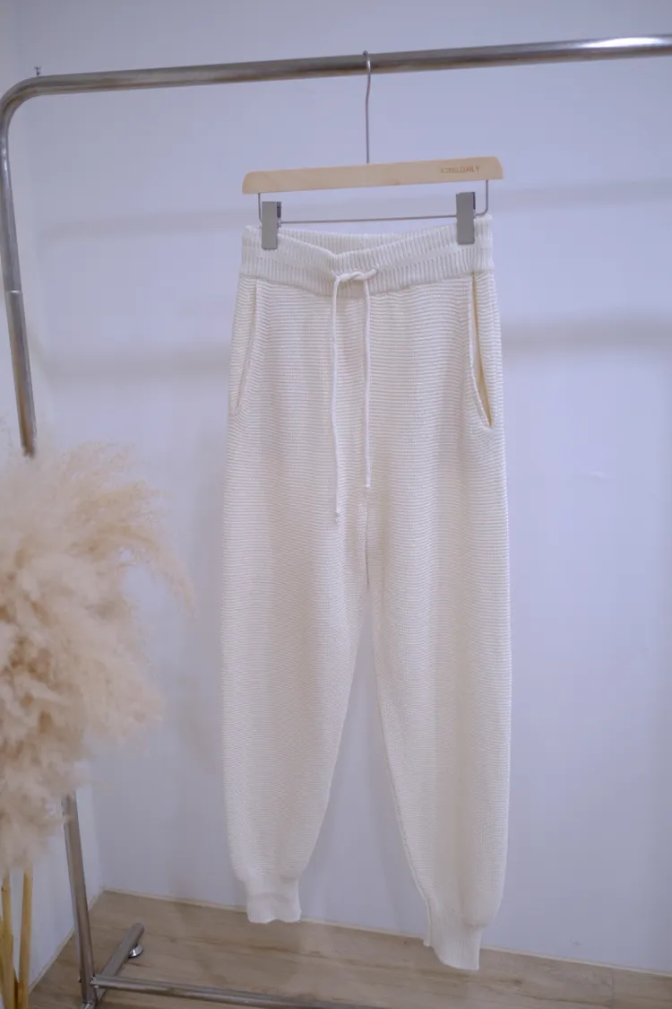 針織抽繩鬆緊縮口褲(米/卡其/藍)