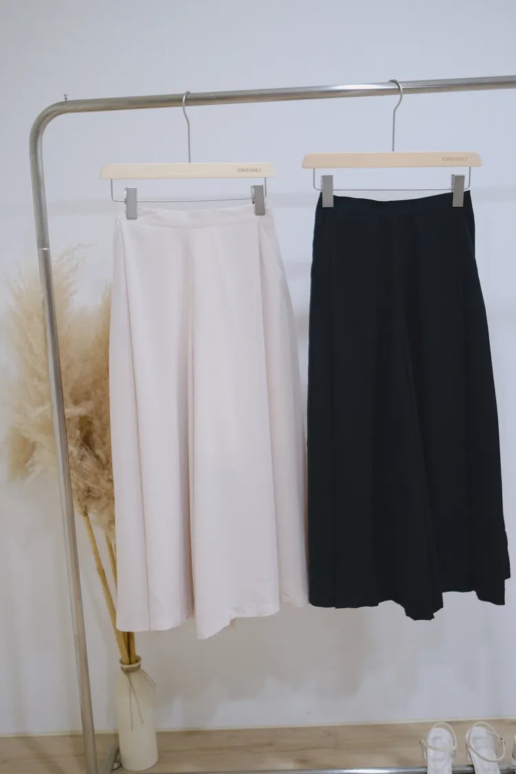輕薄剪裁舒適後鬆緊寬褲(米/咖/黑)
