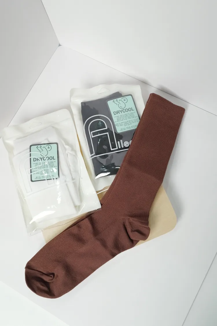 涼感清爽不變形中筒襪三色(白,咖,黑)